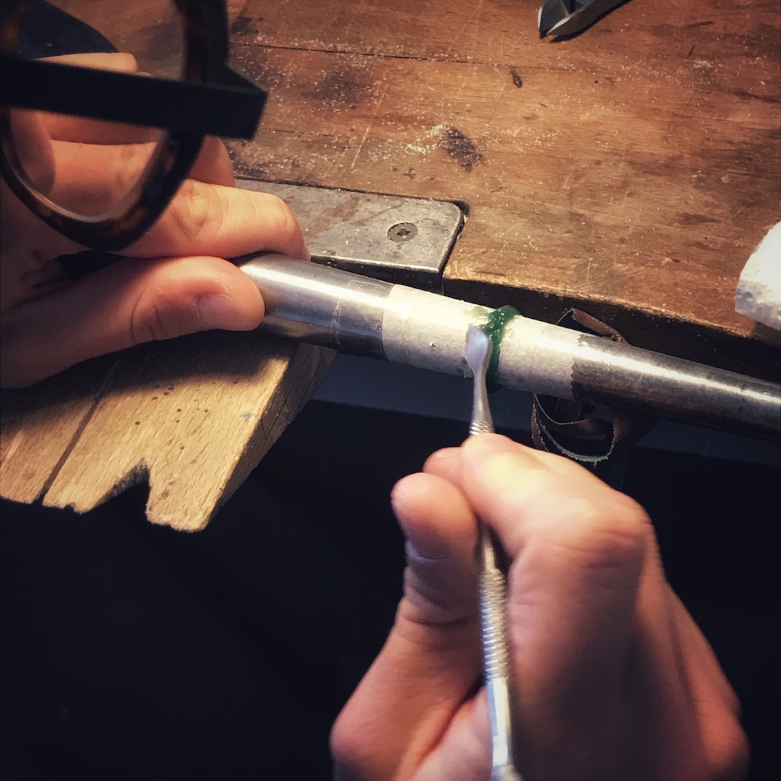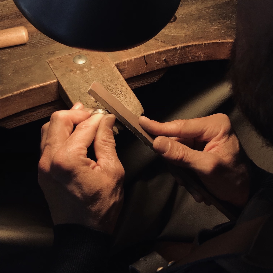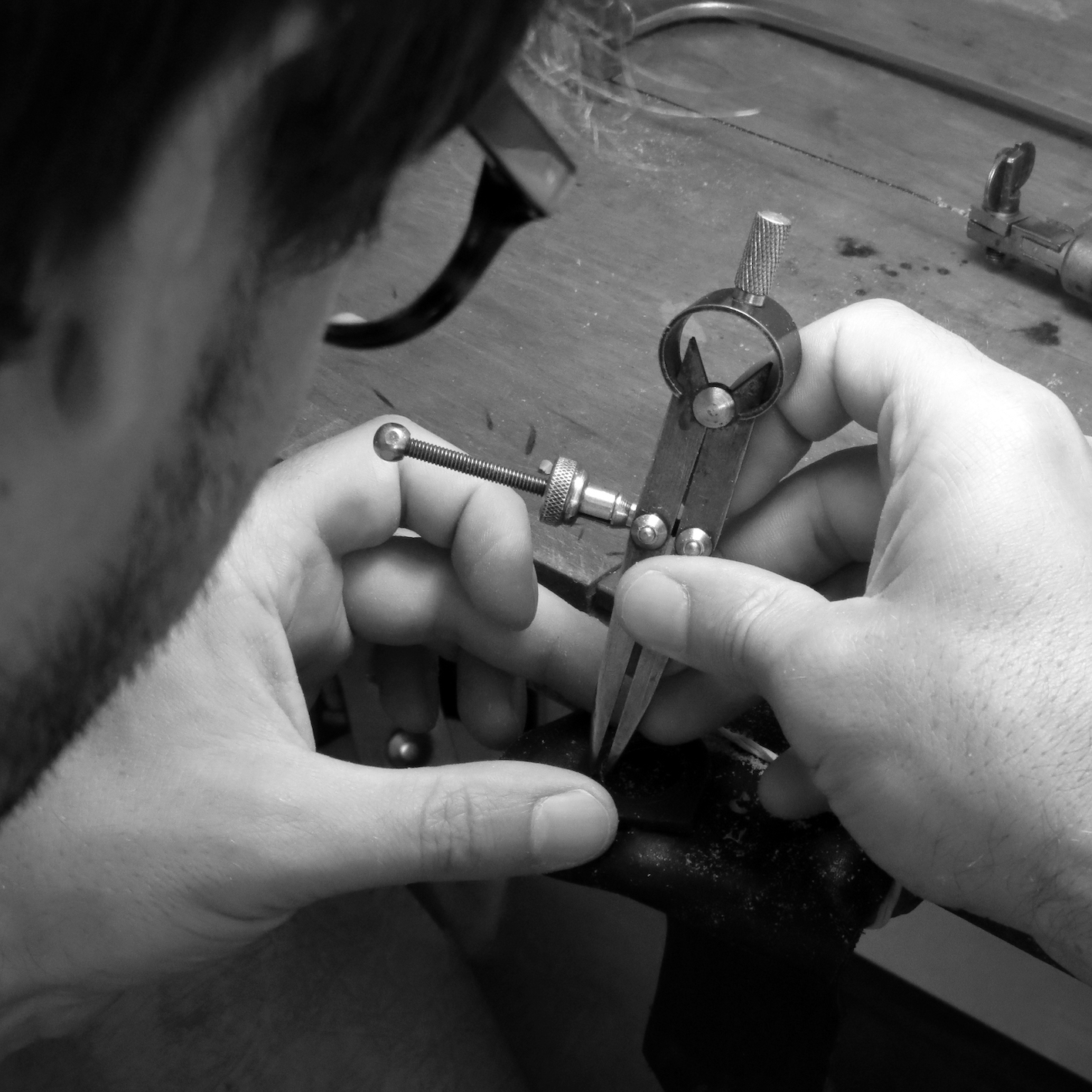 Mais pour vivre ce moment hors du commun, nous devons débuter par un entretien afin de cerner votre demande et vos goûts et déterminer le design de votre/vos anneaux. La fabrication de vos alliances s'organisera généralement en deux séances : le premier cours de 4h vous permettra de scier, limer et sculpter vos anneaux dans de la cire. Vos bagues seront ensuite fondues en métal par un fondeur professionnel, on nomme ce procédé "fonte à cire perdue". Lors du second cours de 2h vous procéderez aux finitions de vos alliances. Limage, émerisage, polissage et bien sûr essayages !